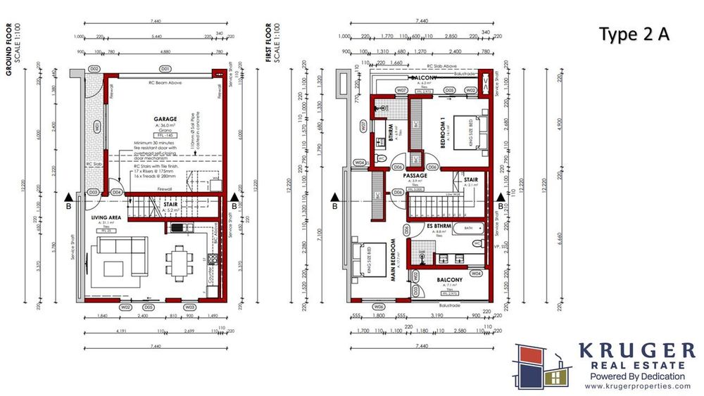 TYPE 2A – UNIT 9-12 - 2-BEDROOM DUPLEX – 160.40m2 - N$ 1,830,000