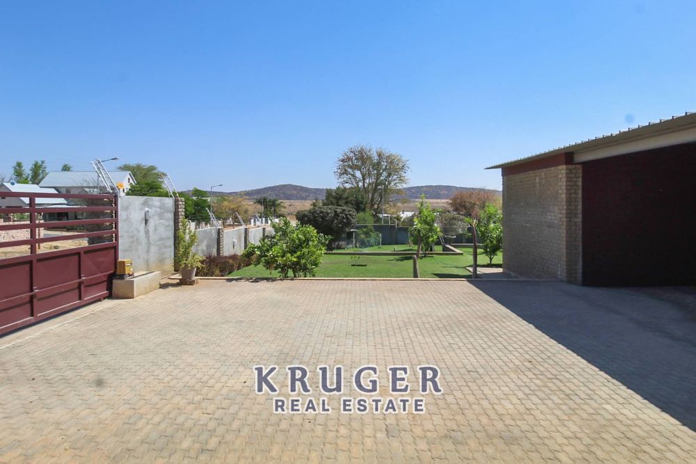 Situated in a prime area of Outjo, this immaculate property is fully equipped with solar power, state-of-the-art finishes, and fantastic entertainment spaces — ideal for modern family living.