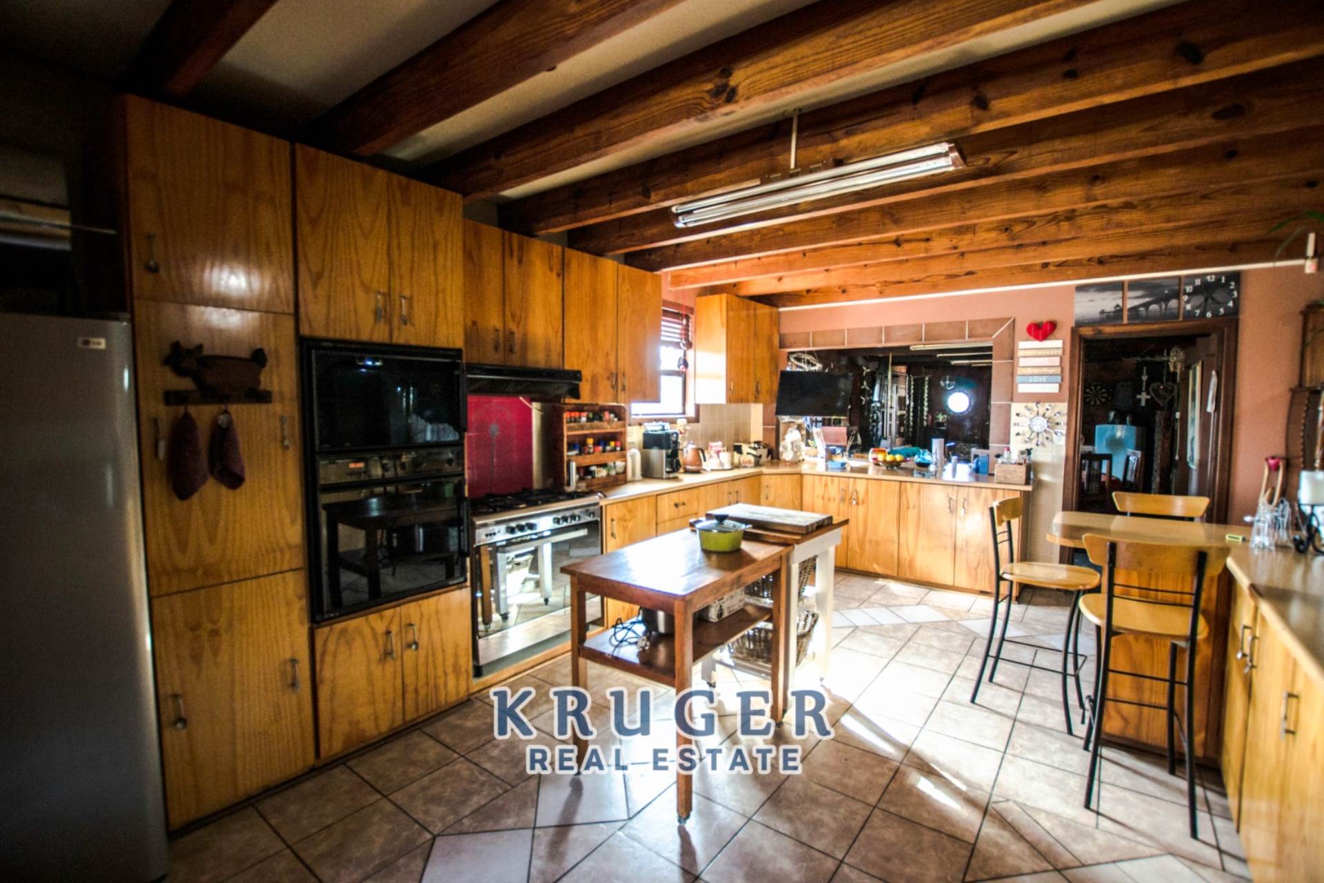 *Kitchen with breakfast island, gas stove, electric oven, extractor & warmer