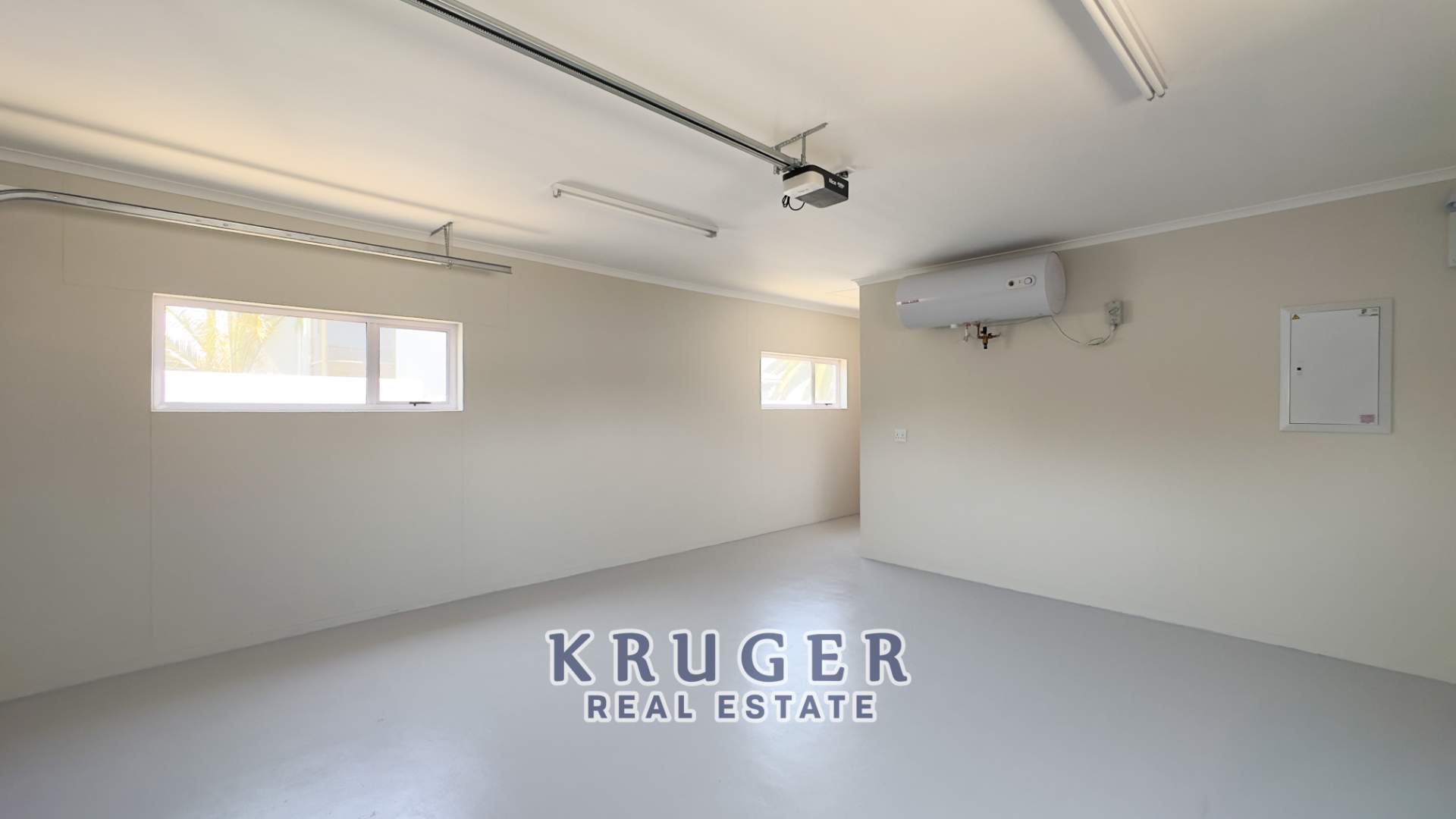- Double garage with ceiling, motorized door & full laundry setup