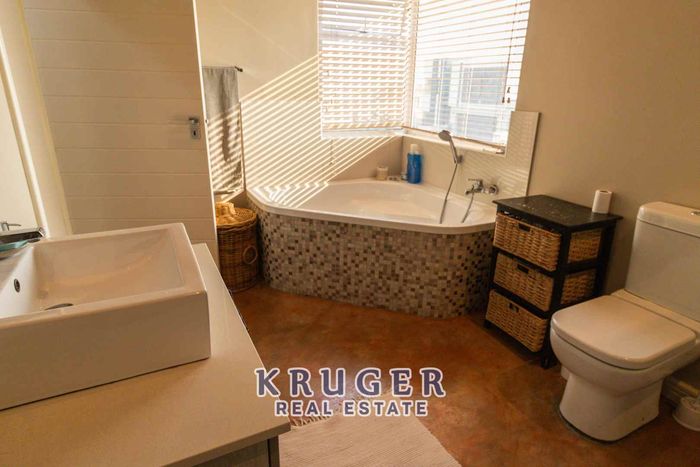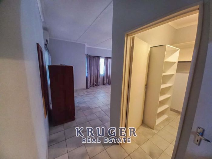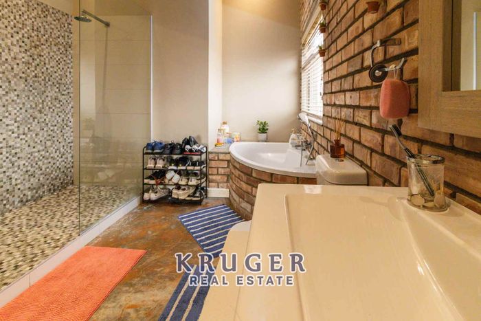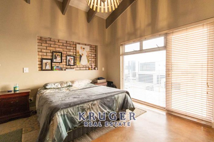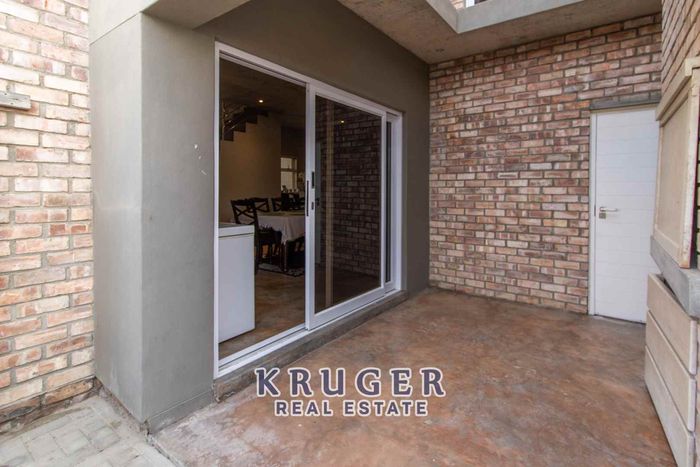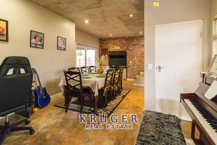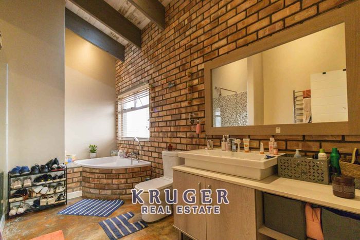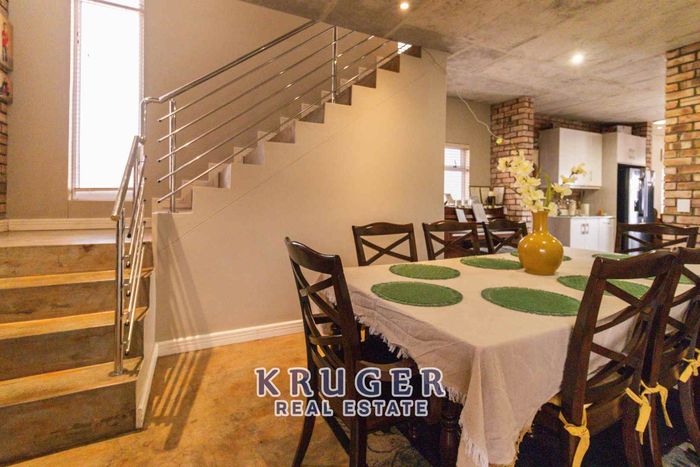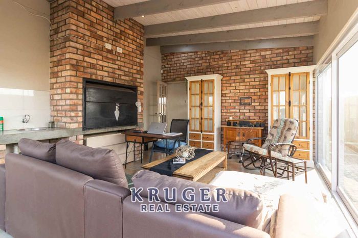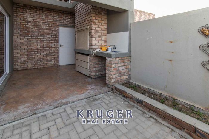 Entertainers' paradise in a secure, leafy neighbourhood — tiled patio with indoor braai and fire pit, modern kitchen and separate two‑bed flat. Five beds, four baths, triple garage.