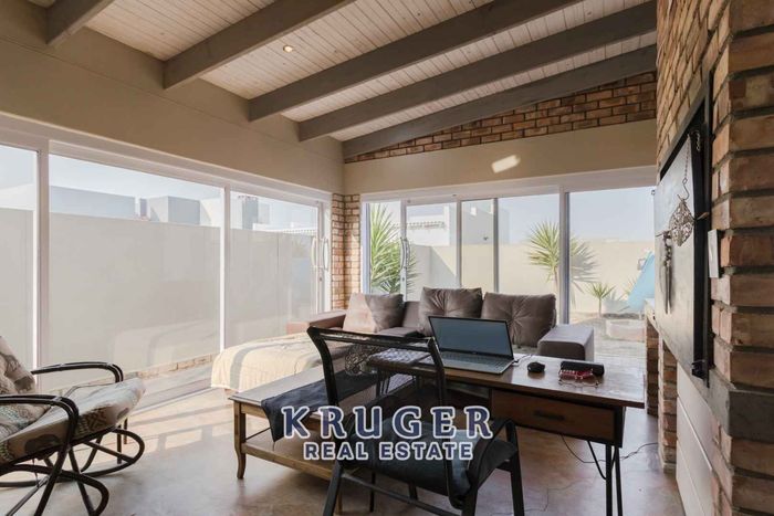 Coastal, lock-up-and-go living in Swakopmund’s Extension 23, SEA GLASS — open-plan interiors, private courtyard and terrace with built-in braai. Three bedrooms, two bathrooms, double garage.