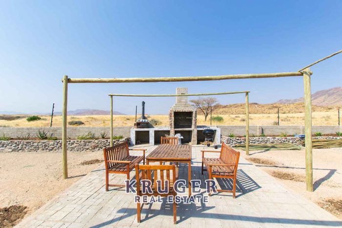 5.8ha plot with new house near Usakos, ideal for farming or tourism. Includes livestock farming operation and off-grid solar system.