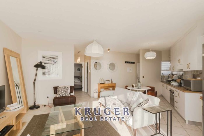 2-bedroom, 1-bathroom apartment with sea view balcony, single garage, and access to pool in Vogelstrand.