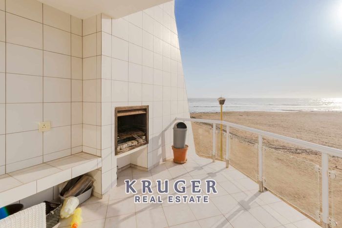 Beachside lock-up-and-go living in Vogelstrand, Swakopmund — walking distance to the shore, veranda with outdoor braai. Three bedrooms, two bathrooms, double garage.