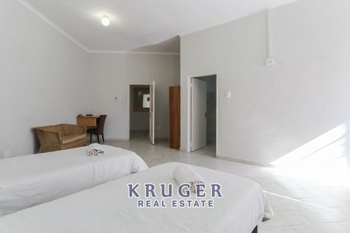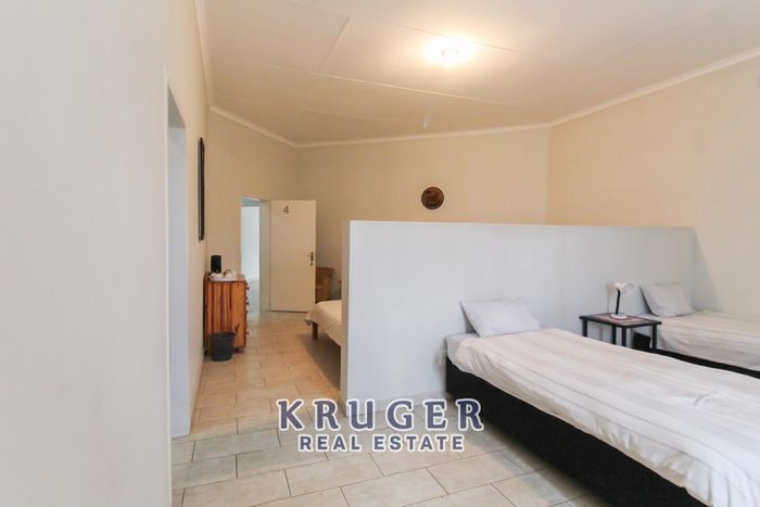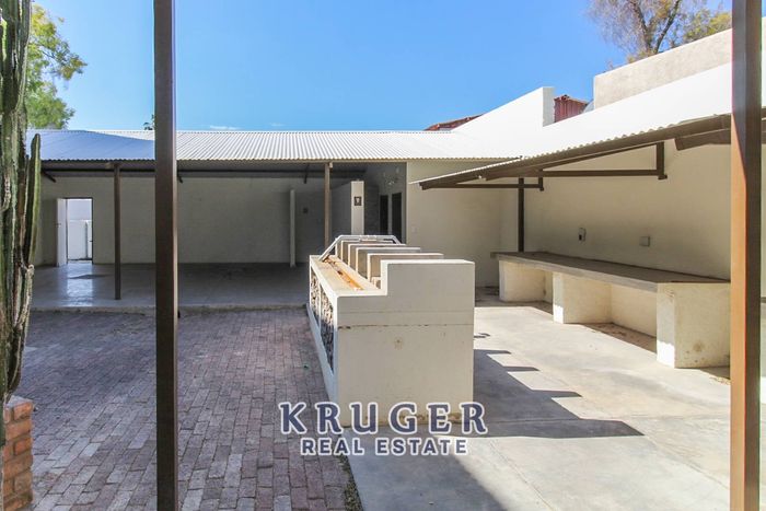 Live, entertain and work in central Outjo, ideal for hospitality or offices, featuring a huge backyard entertainment area with BBQ and dance floor, six ensuite bedrooms and rental offices.